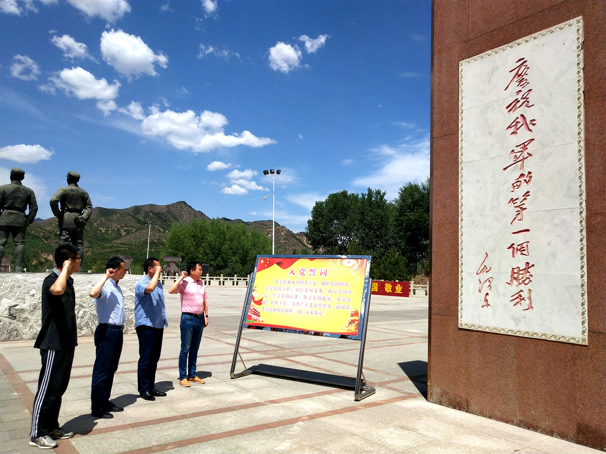 活動中,黨員和入黨積極分子們通過參觀平型關(guān)大捷紀(jì)念館中一件件飽含故事的舊物,了解革命事跡,學(xué)習(xí)“國家至上、民族為重、不畏強(qiáng)敵、敢于勝利”的平型關(guān)精神,感悟黨的豐功偉績和奮斗歷程,并在在紀(jì)念廣場上,全體黨員右拳高擎,重溫入黨誓詞。