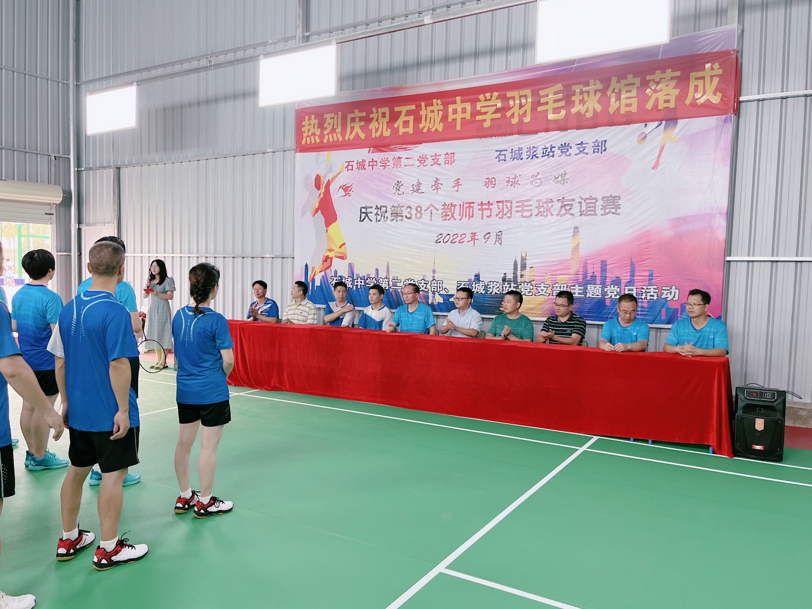 下午三點,20多位參賽運(yùn)動員以飽滿的精神狀態(tài),列隊來到石城中學(xué)羽毛球館,在石城漿站黨支部書記李云和石城中學(xué)黨委書記、校長胡水波的共同宣布下,活動拉開了序幕。