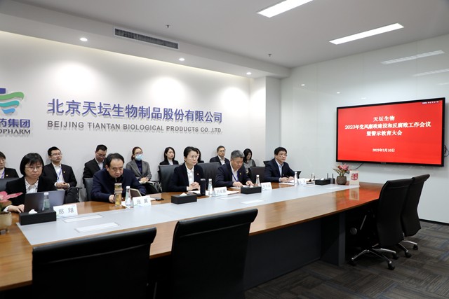 會(huì)議傳達(dá)學(xué)習(xí)了國(guó)資委、國(guó)藥集團(tuán)、中國(guó)生物黨委黨風(fēng)廉政建設(shè)和反腐敗工作會(huì)議精神,總結(jié)了2022年天壇生物全面從嚴(yán)治黨工作情況,對(duì)2023年推進(jìn)黨風(fēng)廉政建設(shè)和反腐敗工作提出要求。