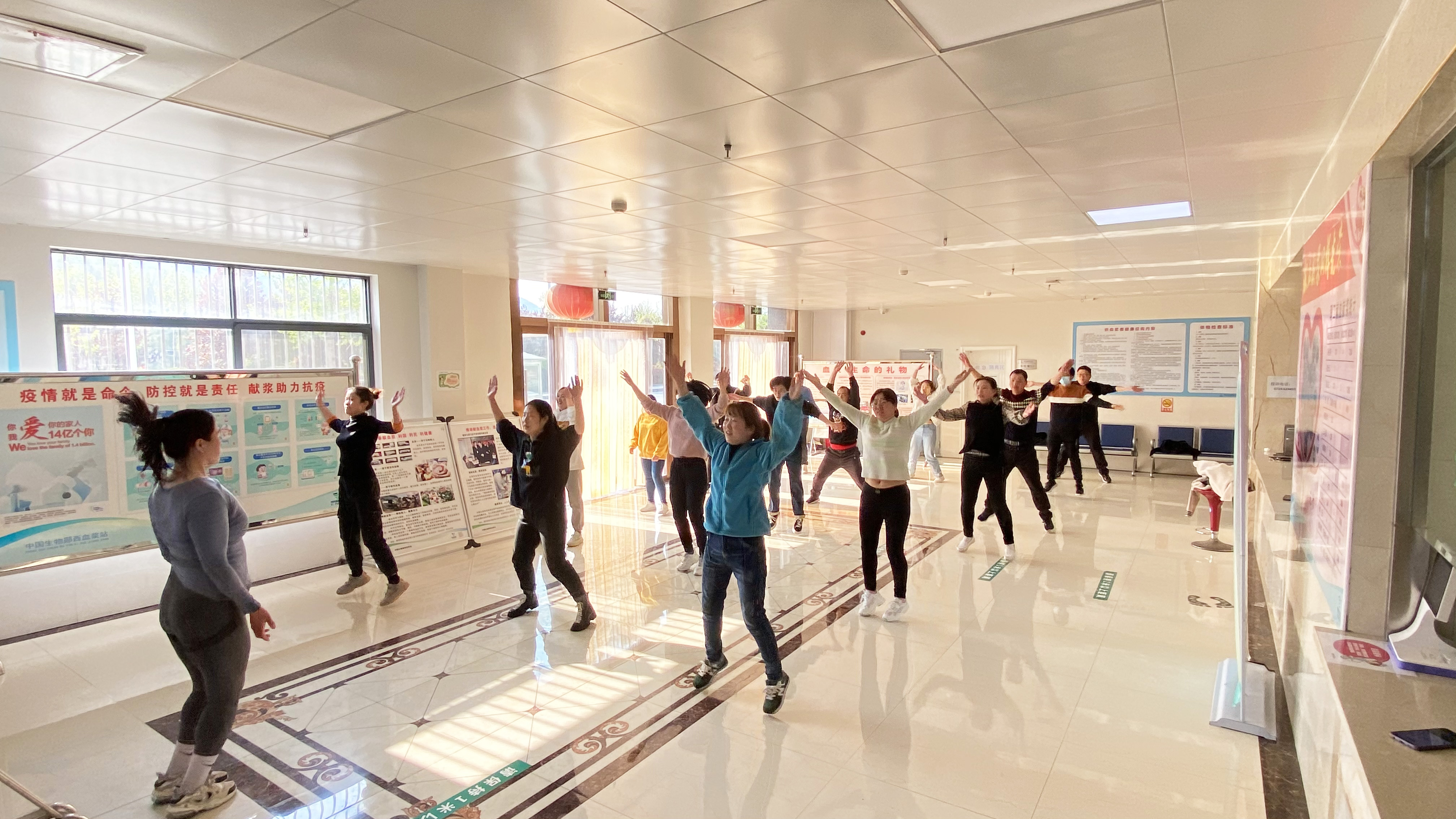 中國生物鄖西血漿站為響應(yīng)全民健身運(yùn)動號召,倡導(dǎo)科學(xué)健身理念,以打造“健康漿站人”為主題,開啟了“動起來+獻(xiàn)血漿=更健康”活動?;顒邮讏觯y西漿站邀請了既是獻(xiàn)漿志愿者,又是專業(yè)健身教練的董紅娥老師給漿站職工上了一堂生動的自重訓(xùn)練課。課堂上,董老師親身示范,悉心傳授,一一糾正大家的動作,確保一招一式規(guī)范到位。