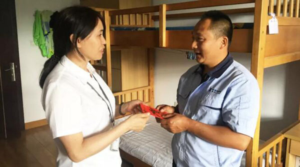 青艾節(jié)節(jié)高,粽香緣勤勞,珍藥送溫曖,員工心自豪。端午佳節(jié)前夕,珍寶島藥業(yè)(虎林)工會(huì)開展向困難員工“送溫暖”活動(dòng),工會(huì)女工委員王玲、青工委員宋明林代表工會(huì)來到困難員工們的家中,將慰問金送到困難員工們的手中,轉(zhuǎn)達(dá)了公司領(lǐng)導(dǎo)對(duì)他們的關(guān)愛,并向他們送上了節(jié)日的祝福。