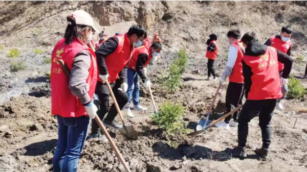 志愿者們參觀了“保護(hù)生態(tài)環(huán)境主題展板”,沿著晨光路進(jìn)行“健康徒步”,最后來(lái)到虎林水庫(kù)山上開(kāi)始綠化植樹(shù)。大家有的拿樹(shù)苗,有的挖坑,有的培土,忙碌的場(chǎng)面,熱火朝天。一個(gè)個(gè)鮮紅的身影,一顆顆翠綠的樹(shù)苗,一面面飄揚(yáng)的旗幟,在這片空曠的土地上編織出一幅美麗的畫卷。