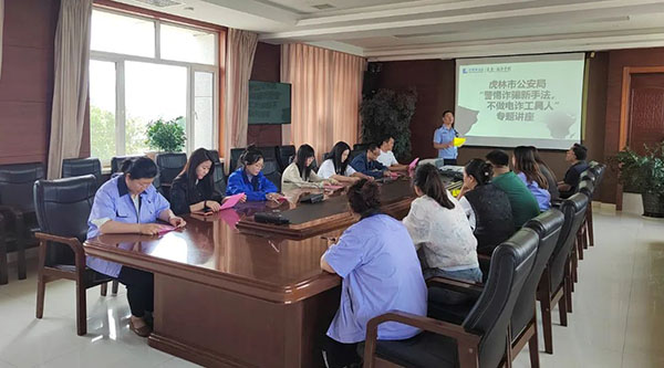 7月10日下午,虎林市公安局曙光派出所民警深入珍寶島藥業(yè)(虎林),開(kāi)展電信網(wǎng)絡(luò)反詐騙宣講活動(dòng),公司人事行政總監(jiān)蘭培寶組織各部門(mén)員工第一時(shí)間到場(chǎng)聆聽(tīng)宣講。